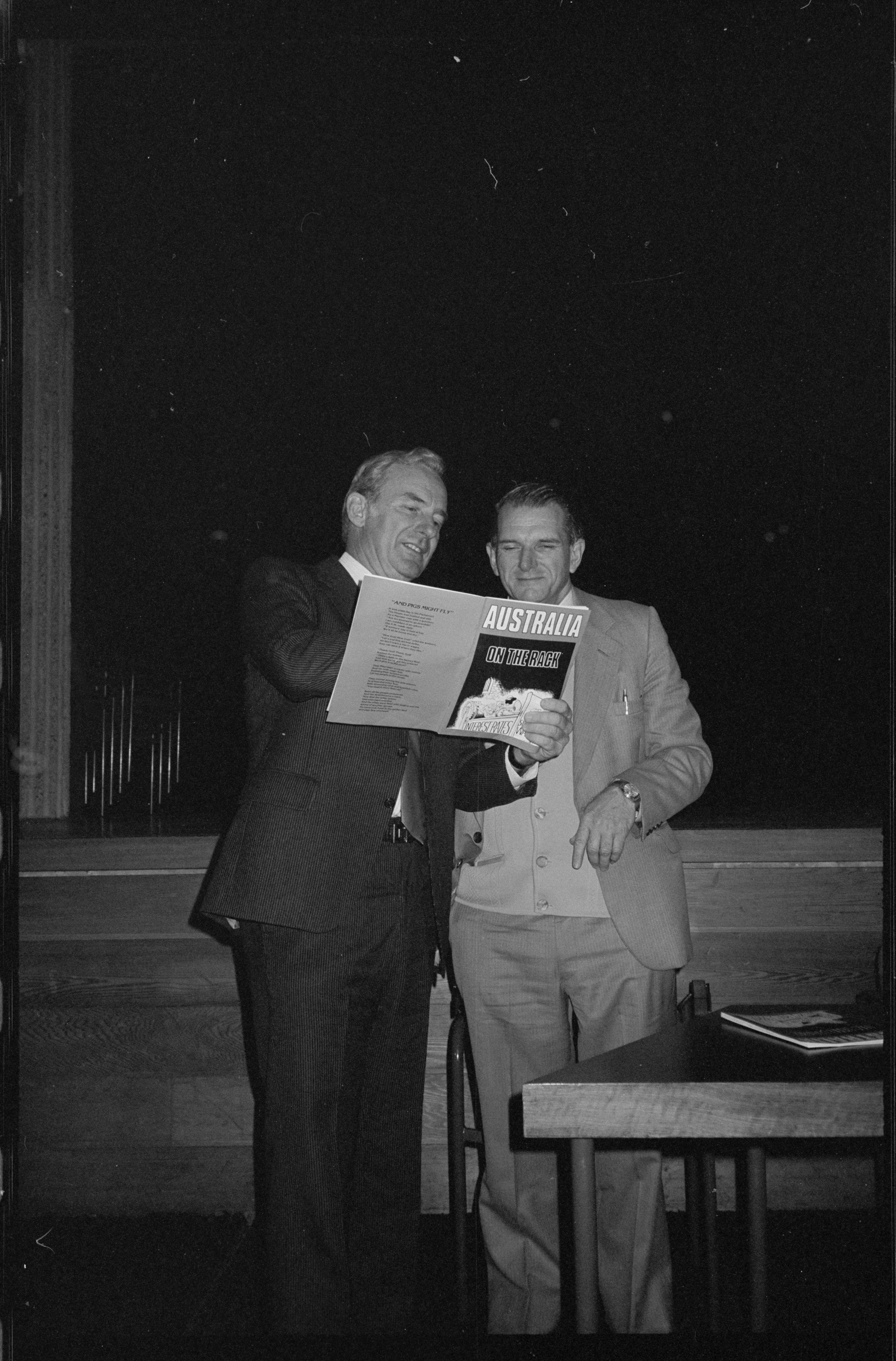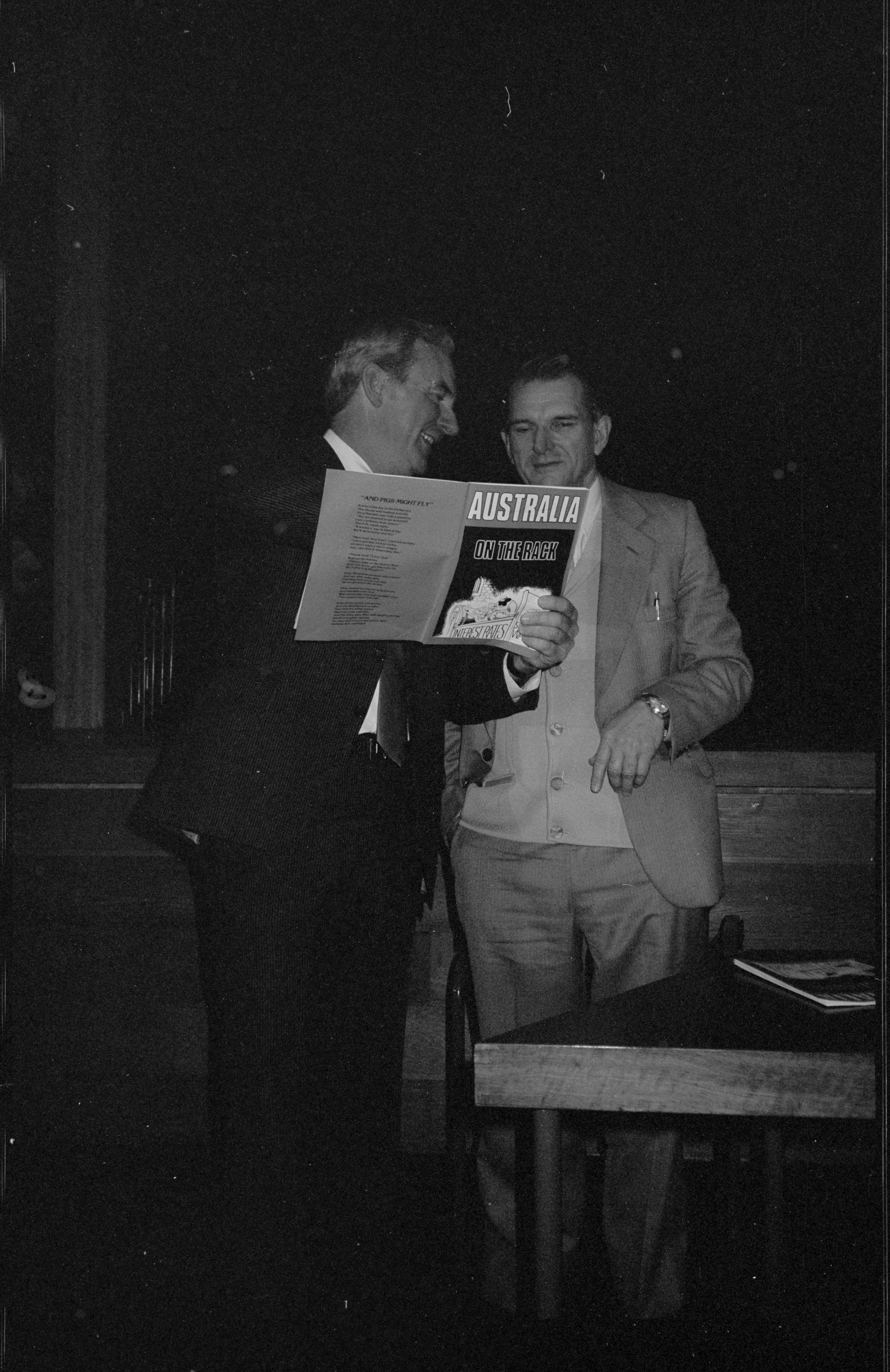 The Amalgamated Metal Workers and Shipwrights Union (AMWSU) launched Australia On The Rack in 1982 as part of a series of popular style economics pamphlets sent to every member of the union. The pamphlet featured in the AMWSU’s education programme and then spread quickly into the courses run by the newly emerging Trade Union Training Authority for union shop stewards and officials. Other pamphlets in this series included Australia Uprooted, Australia Ripped Off, and Australia on the Brink.
