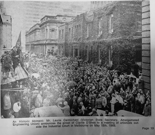 Carmichael was at the centre of the leadership coordinating the action and Clarrie O’Shea was the union leader who courageously agreed to bring the whole dispute to culmination by going to jail instead of authorising his union to pay the fines.