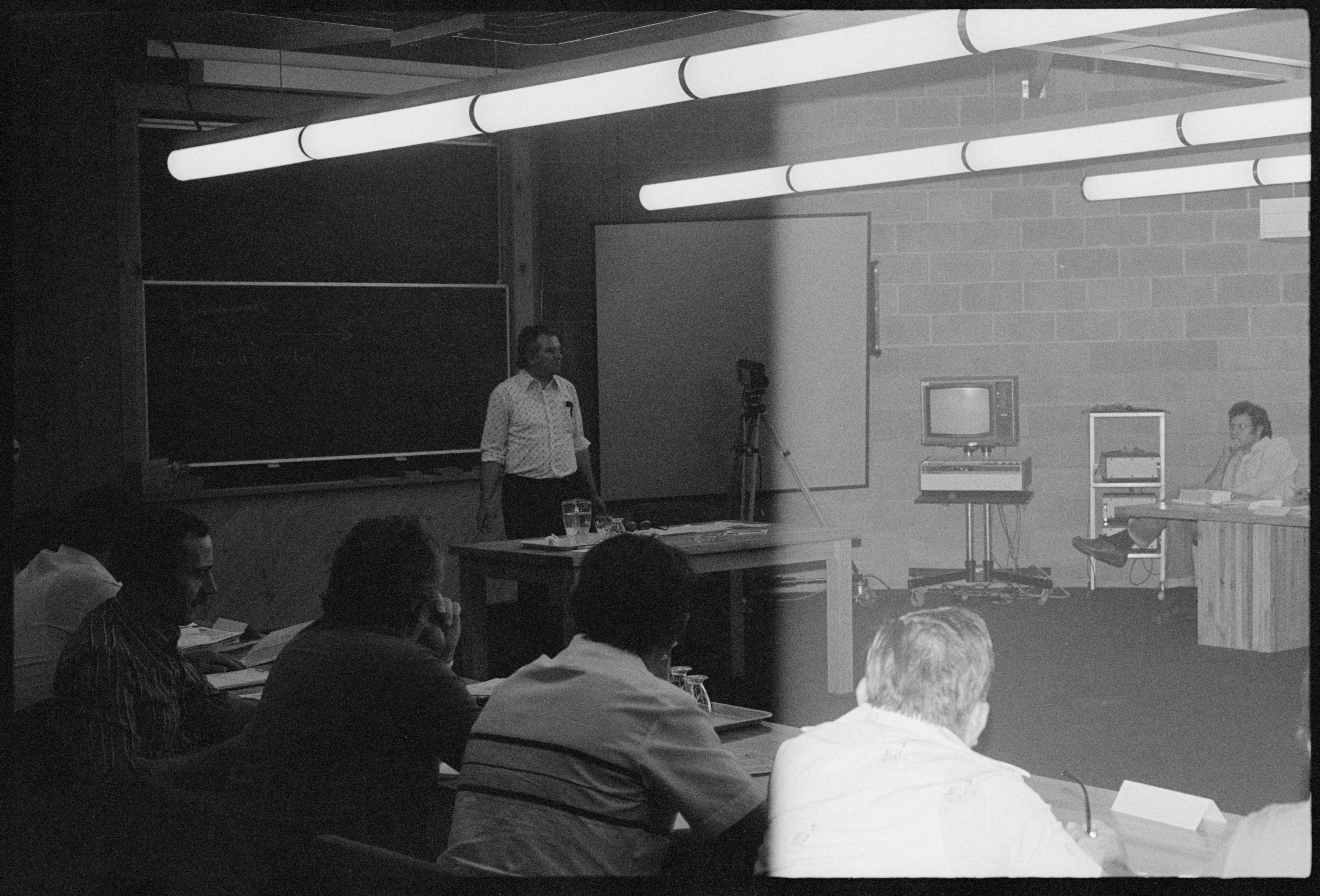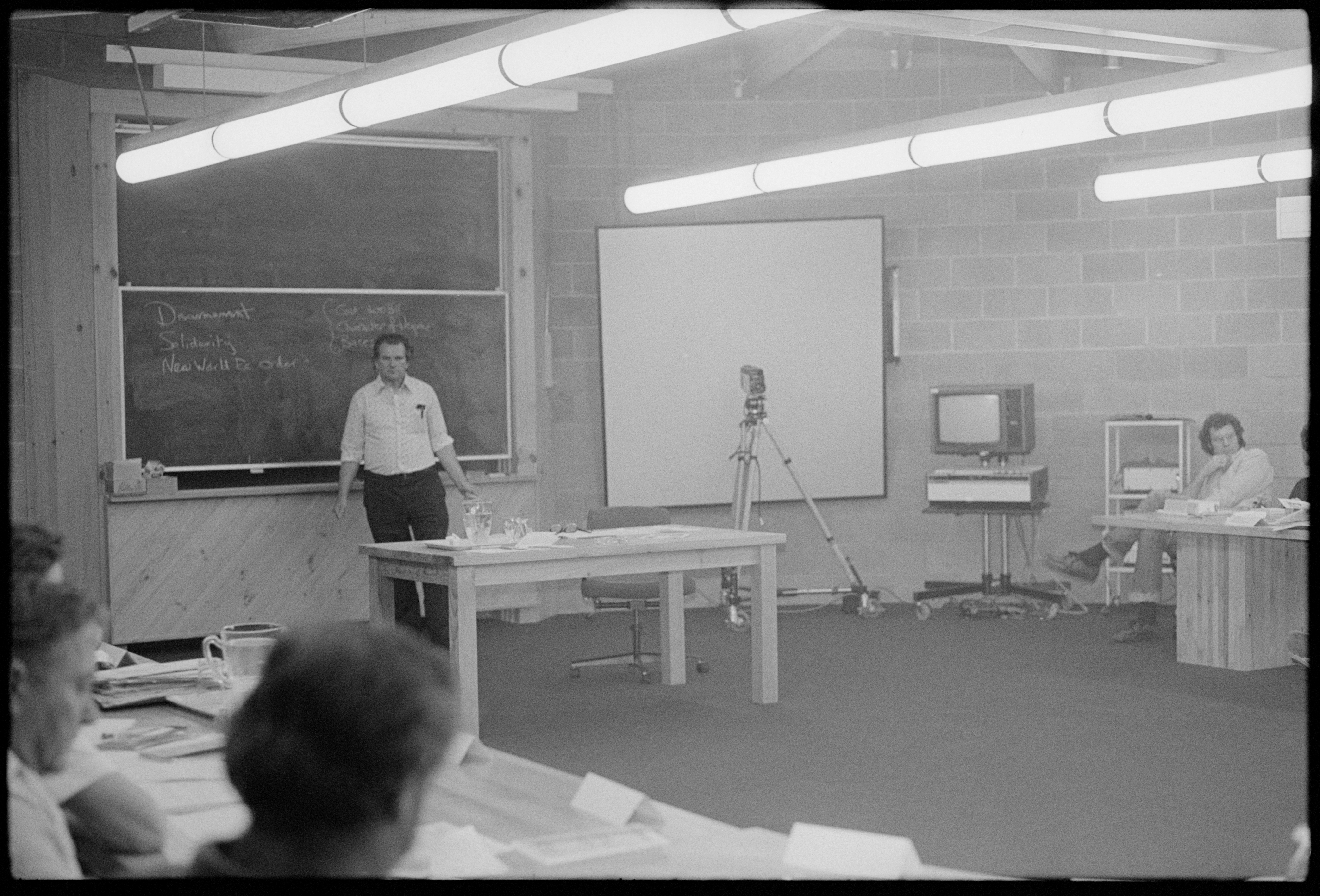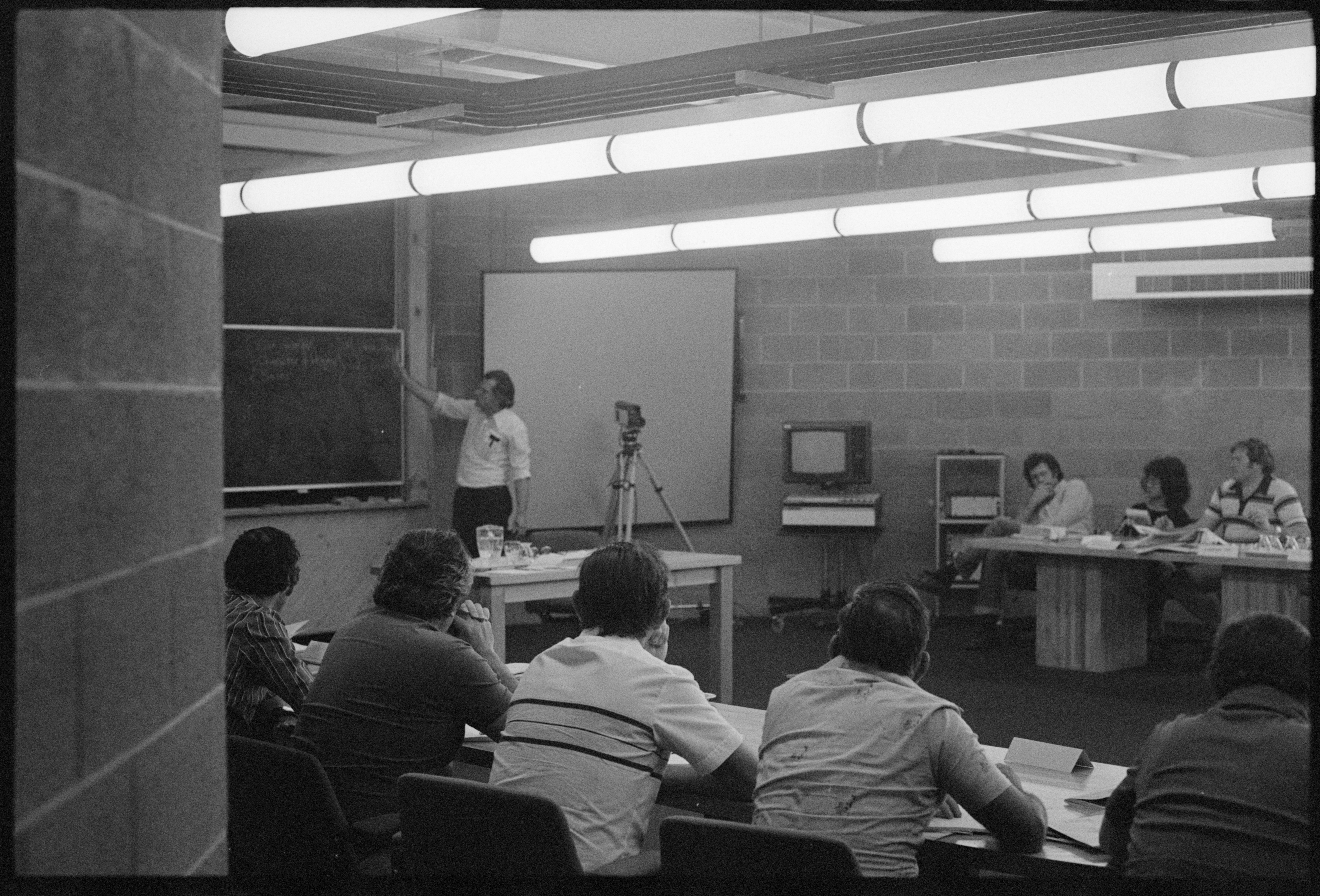 In these photos we see Laurie Carmichael in action as a union trainer, while Assistant National Secretary of the AMWSU, at the Clyde Cameron College in 1978.